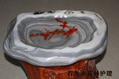 4.適時清理大理石魚缸內魚的排泄物,常換水,適時整理海藻類生物以及石材等物品。殺菌、消毒必不可少,既是對魚類的保護,也是避免微生物給石材受損提供條件。