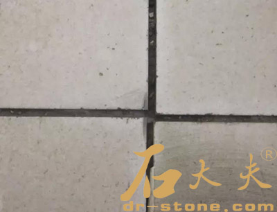 由于污染物的侵蝕,石材會沿著縫隙出現返堿、水斑、霉變、縫隙兩邊發黑發黃等問題。